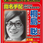 桐島聡容疑者は、1970年代に連続企業爆破事件を起こした容疑者として全国に指名手配されていました。罪名は爆発物取締罰則違反と表記されています。